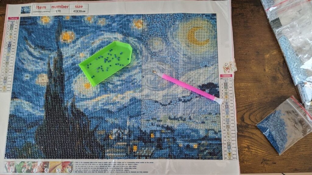 もしかしたら私だけかもしれませんが、台紙に書いてある通りの石を置くだけで、パズルみたいに頭を使ったりしません。頭が暇になってきて、ふとした瞬間に昔あったイヤなこととかを思い出しやすくなったりします。